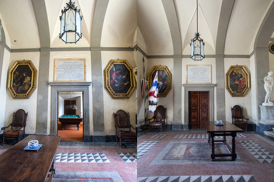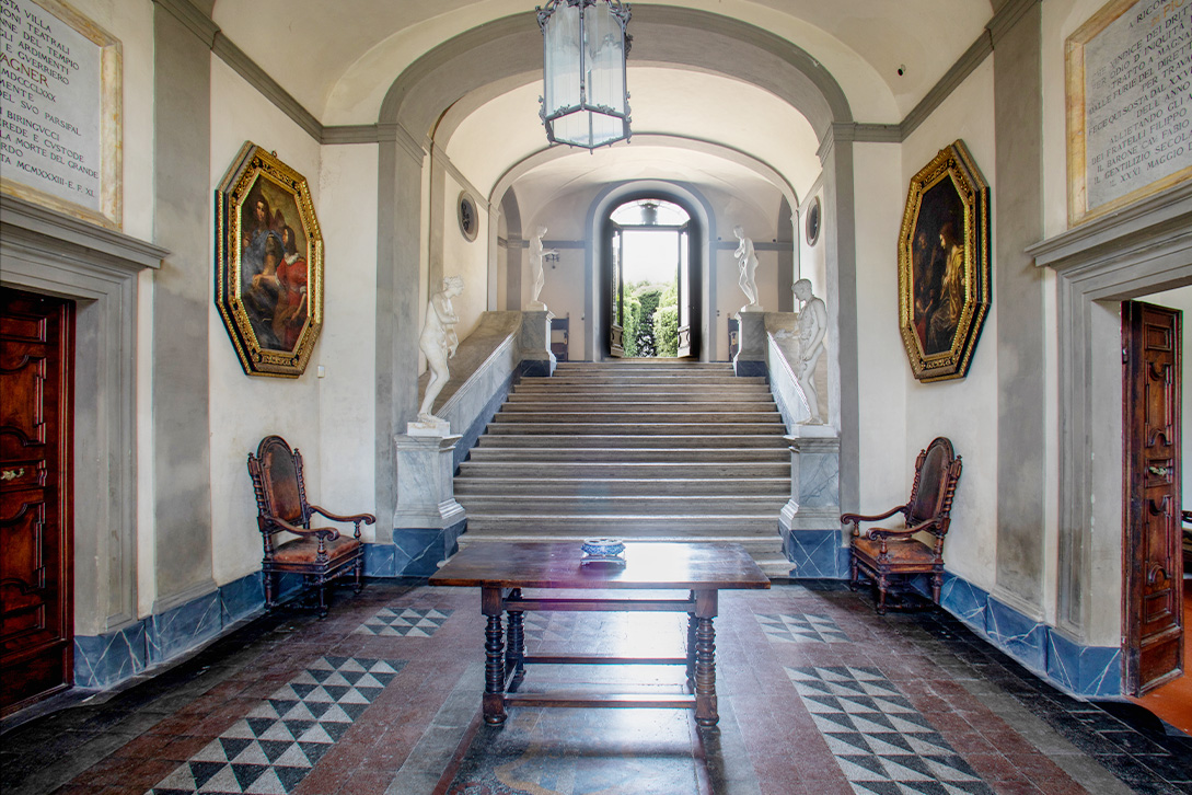 Antistante alla Villa un grande piazzale, delimitato da alti cedri del Libano, permette agli ospiti di usufruire di un vasto posteggio auto privato. Entrando nella Villa al piano terra l’ampio scalone dell’ingresso presenta la sala biliardo sulla destra e lo studio a sinistra; ambienti adatti a tutti i tipi di eventi e perfetti per l’accoglienza degli ospiti, per un light buffet o per la consegna delle bomboniere e dei regali. Al primo piano la sala da pranzo, che si affaccia sulla grande terrazza, può ospitare 12 persone sedute o 25 in piedi. Le altre sale del primo piano possono ospitare fino a 60 persone in piedi. La terrazza, luogo ideale per matrimoni, feste, ricevimenti e cene aziendali, può accogliere fino a 150 persone sedute e 250 persone in piedi.